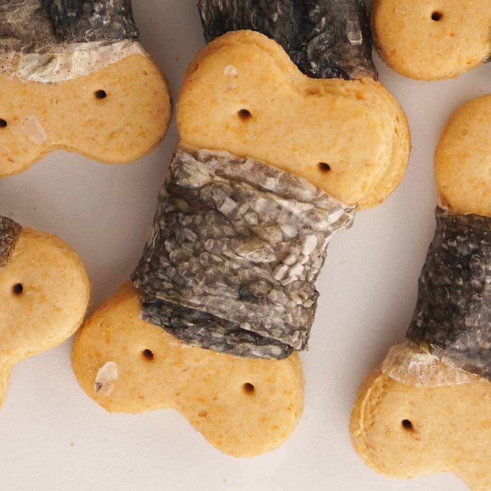 These bone shaped dog biscuits are a delicious, crunchy blend of whole-grain goodness and savory cod skin—perfect for satisfying your pup’s snack cravings. Wrapped in tender cod skin and baked to a crisp texture, these dog biscuits combine wholesome (whole-grain flour) with rich chicken liver powder, creating a flavor that dogs love. As premium pet biscuits, they’re formulated to be a tasty complementary treat for daily enjoyment.