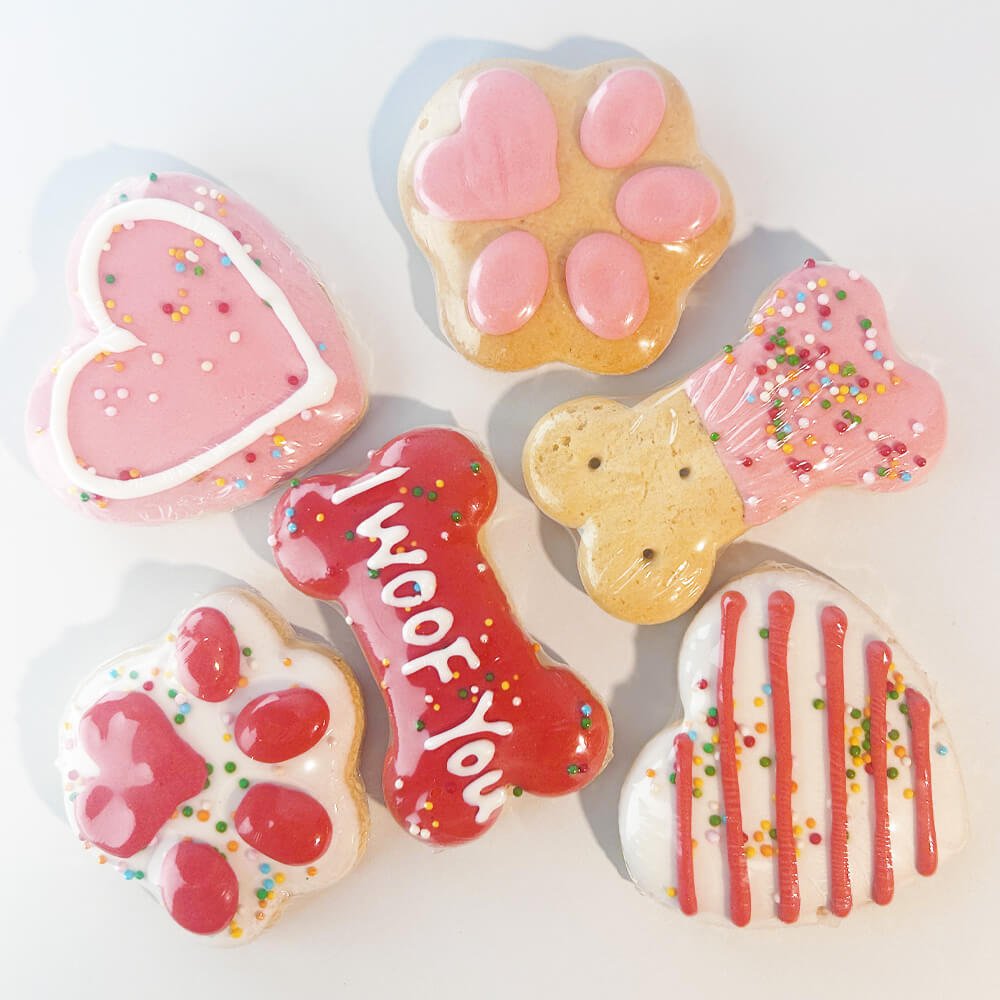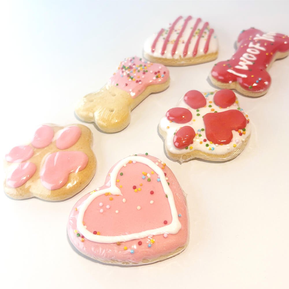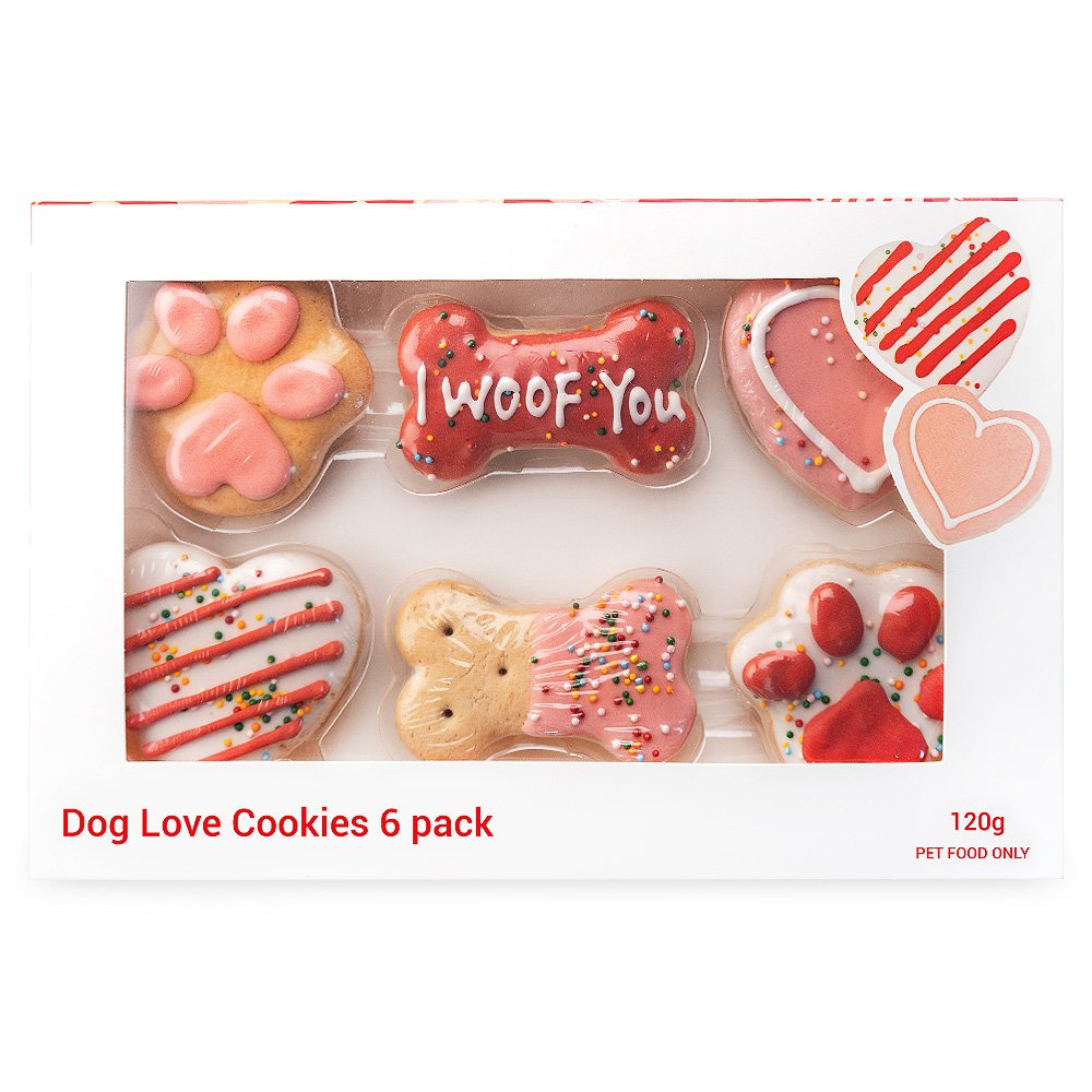 Dog Love Cookies (6-pack) are hand-decorated dog biscuits with adorable paw, heart, and bone shapes—perfect for showing your pup some love or using as daily rewards. Suitable for dogs of all sizes, these treats feature simple, safe ingredients, are easy to store (keep cool/dry, sealed for freshness). Ideal for daily pet bonding and thoughtful snacking!