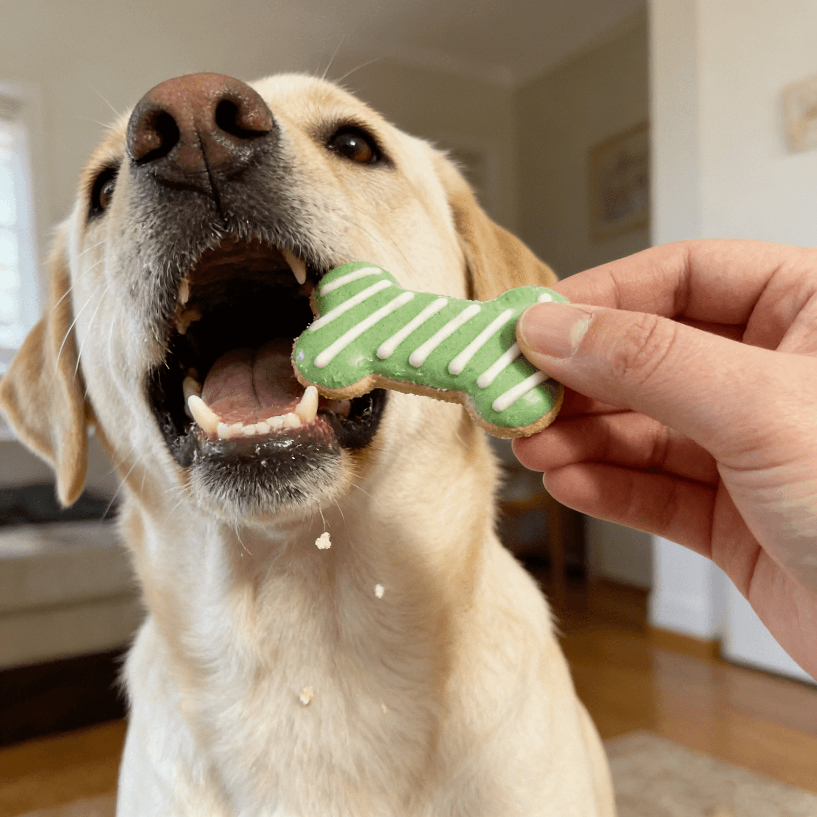 This 9-piece festive dog biscuit gift box (bone-shaped, peanut butter flavor) is a standout pick for pet retail and seasonal gifting: it features decorative iced details, customizable patterns/colors, and a shelf-stable formula (with potassium sorbate) for long-lasting freshness. Formulated for all dog weights (1 biscuit per 10 lbs daily) as an intermittent supplement (not for human consumption), it combines palatable flavor, clear nutritional values (min 6.0% crude protein), and elegant crinkle-padded packaging—ideal for spoiling pups or gifting to dog lovers during holidays.