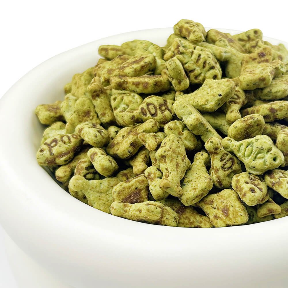 Enriched with green plant extracts containing folic acid, chlorophyll, vitamins B12, B6, K, C, and beta-carotene, these biscuits cat treats provide extra trace elements and vitamins for your cat’s overall health.